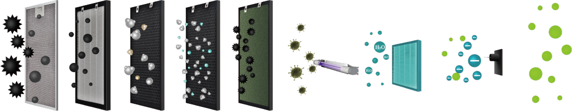 5、光觸媒過濾層:a.抗菌性,殺滅大腸桿菌,金黃色葡萄球菌,肺炎克雷伯氏菌,綠膿桿菌,病毒等。b.空氣凈化,有效分解空氣中有機化合物及有毒害物質。